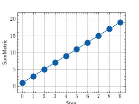 >>> # Example plotting multiple values >>> from torch import rand, randint >>> from torchmetrics.aggregation import SumMetric >>> metric = SumMetric() >>> values = [ ] >>> for i in range(10): ... values.append(metric([i, i+1])) >>> fig_, ax_ = metric.plot(values)