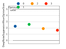 >>> # Example plotting a single value >>> import torch >>> from torchmetrics.audio import DeepNoiseSuppressionMeanOpinionScore >>> metric = DeepNoiseSuppressionMeanOpinionScore(8000, False) >>> metric.update(torch.rand(8000)) >>> fig_, ax_ = metric.plot()