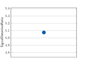 >>> # Example plotting a single value >>> import torch >>> from torchmetrics.audio import SignalDistortionRatio >>> metric = SignalDistortionRatio() >>> metric.update(torch.rand(8000), torch.rand(8000)) >>> fig_, ax_ = metric.plot()