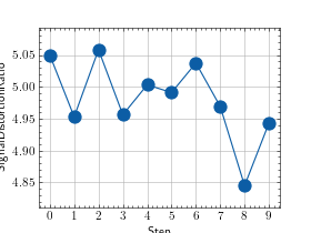 >>> # Example plotting multiple values >>> import torch >>> from torchmetrics.audio import SignalDistortionRatio >>> metric = SignalDistortionRatio() >>> values = [ ] >>> for _ in range(10): ... values.append(metric(torch.rand(8000), torch.rand(8000))) >>> fig_, ax_ = metric.plot(values)