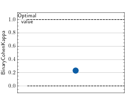 >>> from torch import rand, randint >>> # Example plotting a single value >>> from torchmetrics.classification import BinaryCohenKappa >>> metric = BinaryCohenKappa() >>> metric.update(rand(10), randint(2,(10,))) >>> fig_, ax_ = metric.plot()