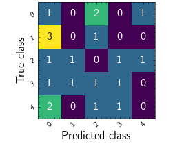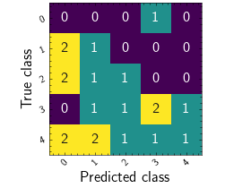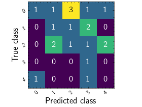 >>> from torch import randint >>> from torchmetrics.classification import MulticlassConfusionMatrix >>> metric = MulticlassConfusionMatrix(num_classes=5) >>> metric.update(randint(5, (20,)), randint(5, (20,))) >>> fig_, ax_ = metric.plot()