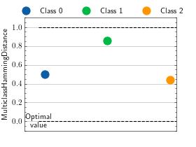 >>> # Example plotting a single value per class >>> from torch import randint >>> from torchmetrics.classification import MulticlassHammingDistance >>> metric = MulticlassHammingDistance(num_classes=3, average=None) >>> metric.update(randint(3, (20,)), randint(3, (20,))) >>> fig_, ax_ = metric.plot()