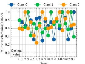 >>> # Example plotting multiple values >>> from torch import rand, randint >>> from torchmetrics.classification import MultilabelHammingDistance >>> metric = MultilabelHammingDistance(num_labels=3) >>> values = [ ] >>> for _ in range(10): ... values.append(metric(randint(2, (20, 3)), randint(2, (20, 3)))) >>> fig_, ax_ = metric.plot(values)