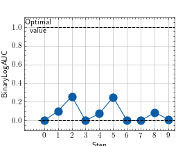 >>> # Example plotting multiple values >>> import torch >>> from torchmetrics.classification import BinaryLogAUC >>> metric = BinaryLogAUC() >>> values = [ ] >>> for _ in range(10): ... values.append(metric(torch.rand(20,), torch.randint(2, (20,)))) >>> fig_, ax_ = metric.plot(values)