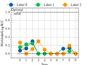 >>> # Example plotting multiple values >>> import torch >>> from torchmetrics.classification import MultilabelLogAUC >>> metric = MultilabelLogAUC(num_labels=3) >>> values = [ ] >>> for _ in range(10): ... values.append(metric(torch.rand(20,3), torch.randint(2, (20,3)))) >>> fig_, ax_ = metric.plot(values)