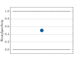 >>> from torch import rand, randint >>> # Example plotting a single value >>> from torchmetrics.classification import BinarySpecificity >>> metric = BinarySpecificity() >>> metric.update(rand(10), randint(2,(10,))) >>> fig_, ax_ = metric.plot()