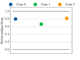 >>> from torch import randint >>> # Example plotting a single value per class >>> from torchmetrics.classification import MulticlassSpecificity >>> metric = MulticlassSpecificity(num_classes=3, average=None) >>> metric.update(randint(3, (20,)), randint(3, (20,))) >>> fig_, ax_ = metric.plot()