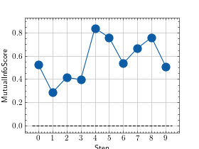>>> # Example plotting multiple values >>> import torch >>> from torchmetrics.clustering import MutualInfoScore >>> metric = MutualInfoScore() >>> values = [ ] >>> for _ in range(10): ... values.append(metric(torch.randint(0, 4, (10,)), torch.randint(0, 4, (10,)))) >>> fig_, ax_ = metric.plot(values)