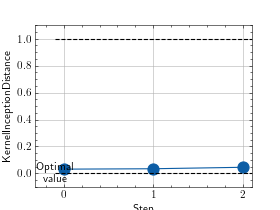 \[KID = MMD(f_{real}, f_{fake})^2\]where \(MMD\) is the maximum mean discrepancy and \(I_{real}, I_{fake}\) are extracted features from real and fake images, see kid ref1 for more details. In particular, calculating the MMD requires the evaluation of a polynomial kernel function \(k\)