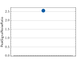 >>> # Example plotting a single value >>> import torch >>> from torchmetrics.image import PeakSignalNoiseRatio >>> metric = PeakSignalNoiseRatio() >>> preds = torch.tensor([[0.0, 1.0], [2.0, 3.0]]) >>> target = torch.tensor([[3.0, 2.0], [1.0, 0.0]]) >>> metric.update(preds, target) >>> fig_, ax_ = metric.plot()