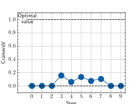 >>> # Example plotting multiple values >>> import torch >>> from torchmetrics.nominal import CramersV >>> metric = CramersV(num_classes=5) >>> values = [ ] >>> for _ in range(10): ... values.append(metric(torch.randint(0, 4, (100,)), torch.randint(0, 4, (100,)))) >>> fig_, ax_ = metric.plot(values)