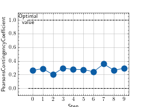 >>> # Example plotting multiple values >>> import torch >>> from torchmetrics.nominal import PearsonsContingencyCoefficient >>> metric = PearsonsContingencyCoefficient(num_classes=5) >>> values = [ ] >>> for _ in range(10): ... values.append(metric(torch.randint(0, 4, (100,)), torch.randint(0, 4, (100,)))) >>> fig_, ax_ = metric.plot(values)