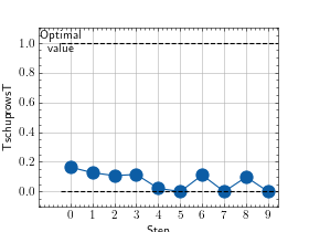 >>> # Example plotting multiple values >>> import torch >>> from torchmetrics.nominal import TschuprowsT >>> metric = TschuprowsT(num_classes=5) >>> values = [ ] >>> for _ in range(10): ... values.append(metric(torch.randint(0, 4, (100,)), torch.randint(0, 4, (100,)))) >>> fig_, ax_ = metric.plot(values)