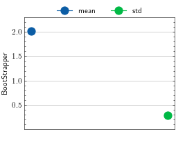 >>> # Example plotting a single value >>> import torch >>> from torchmetrics.wrappers import BootStrapper >>> from torchmetrics.regression import MeanSquaredError >>> metric = BootStrapper(MeanSquaredError(), num_bootstraps=20) >>> metric.update(torch.randn(100,), torch.randn(100,)) >>> fig_, ax_ = metric.plot()
