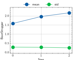 >>> # Example plotting multiple values >>> import torch >>> from torchmetrics.wrappers import BootStrapper >>> from torchmetrics.regression import MeanSquaredError >>> metric = BootStrapper(MeanSquaredError(), num_bootstraps=20) >>> values = [ ] >>> for _ in range(3): ... values.append(metric(torch.randn(100,), torch.randn(100,))) >>> fig_, ax_ = metric.plot(values)