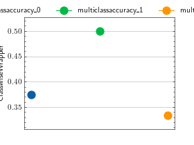 >>> from torch import randint, randn >>> from torchmetrics.wrappers import ClasswiseWrapper >>> from torchmetrics.classification import MulticlassAccuracy >>> metric = ClasswiseWrapper( ... MulticlassAccuracy(num_classes=3, average=None), ... labels=["horse", "fish", "dog"] ... ) >>> preds = randn(10, 3).softmax(dim=-1) >>> target = randint(3, (10,)) >>> metric(preds, target) {'multiclassaccuracy_horse': tensor(0.), 'multiclassaccuracy_fish': tensor(0.3333), 'multiclassaccuracy_dog': tensor(0.4000)}